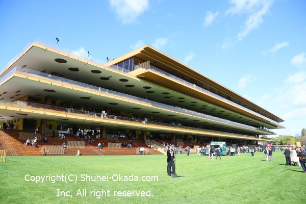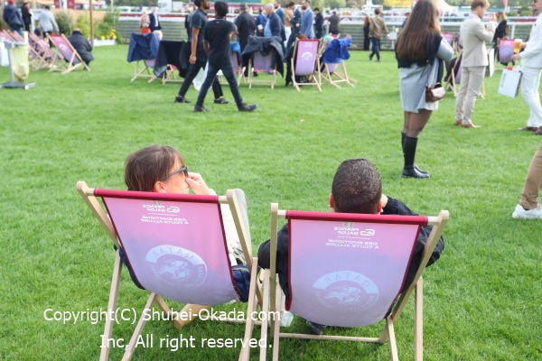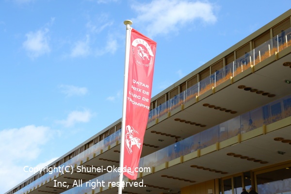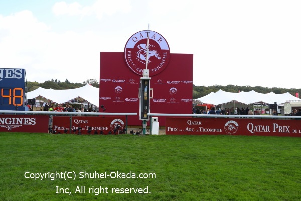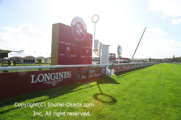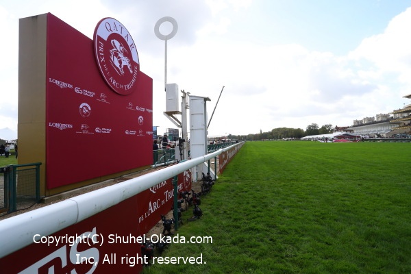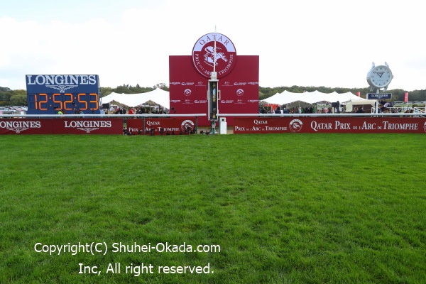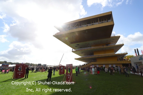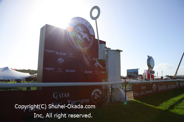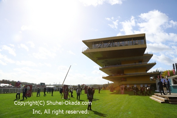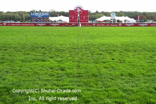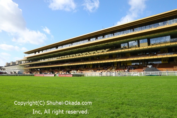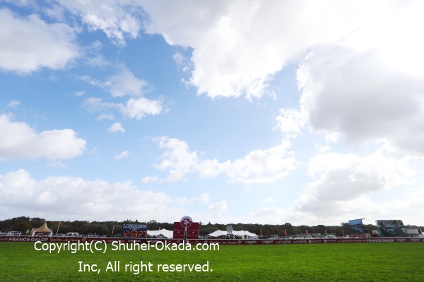 前日夕方の大雨が嘘のような快晴の、パリロンシャン競馬場。