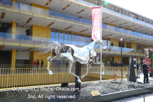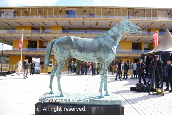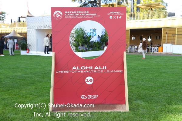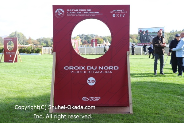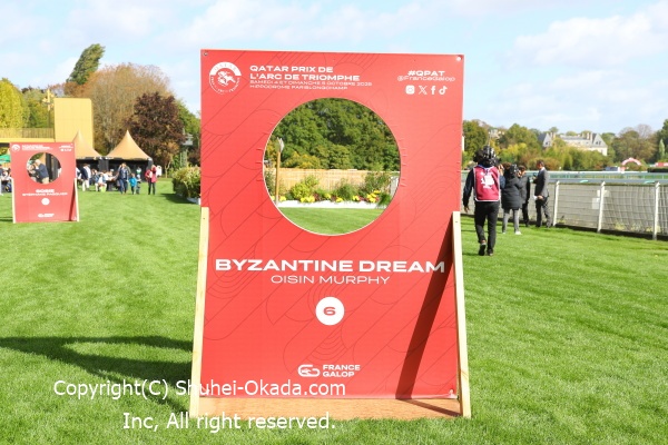 一般エリアには凱旋門賞出走馬の顔出し(記念撮影が出来る)看板が設置されていた。