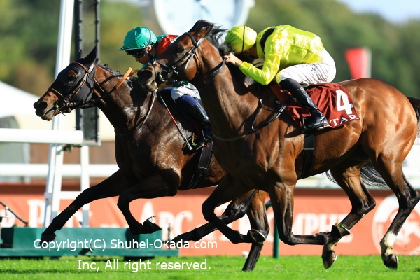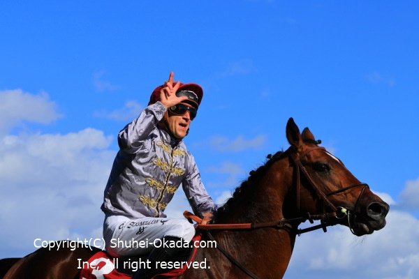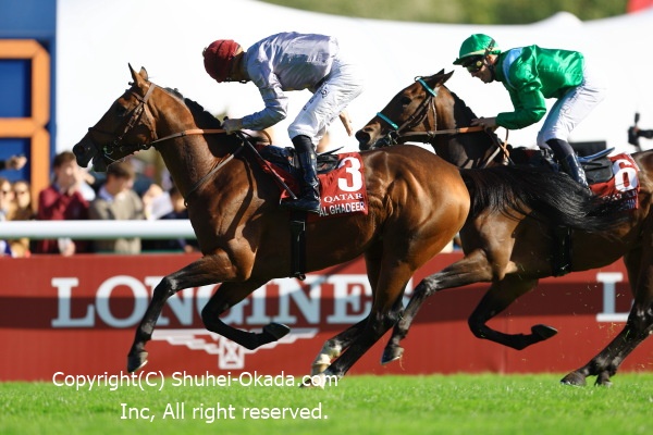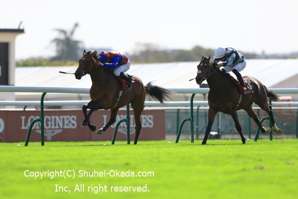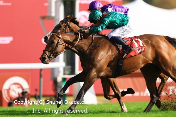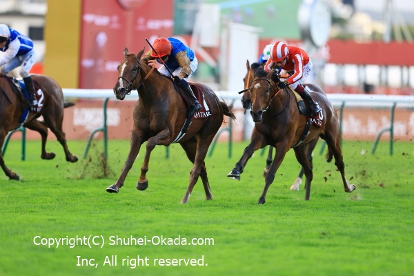 3レースのアラビアントロフィー(芝2000m G1)は、スミヨン騎乗のハジャマーが接戦を制した。