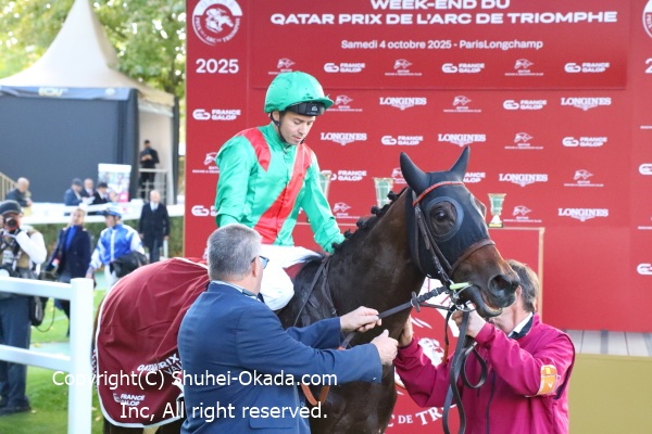 メインレースの第104回凱旋門賞(Qatar Prix de l’Arc de Triomphe)は、一頭取り消して17頭で争われた凱旋門賞、日本からはクロワデュノール 牡3歳(斉藤 崇史)・アロヒアリイ 牡3歳(田中博康)・ビザンチンドリーム 牡4歳(坂口 智康)が出走。