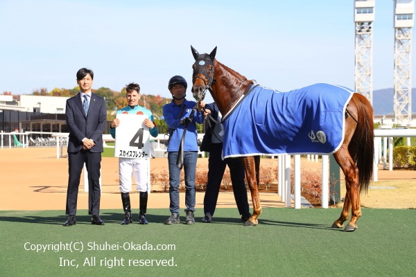 5レースのメイクデビュー(芝1800m)はC.デムーロ騎乗のスカイスプレンダーが1番人気に応えて新馬勝ち。