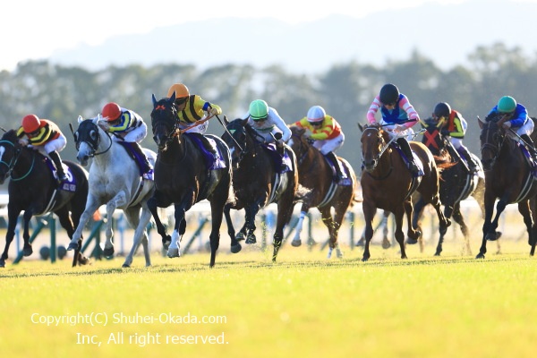 トウシンマカオがスピードを活かして逃げると、速いペースで17頭を引っ張る。