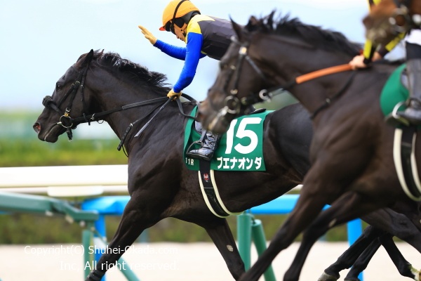 ハンデ重賞らしいゴール前の混戦を、断ち切ったのは川田将雅騎乗のブエナオンダ。