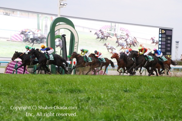 ターフビジョンをしっかりと見て脚色を冷静に見極めて、勝ち馬に狙いを定めて撮影。