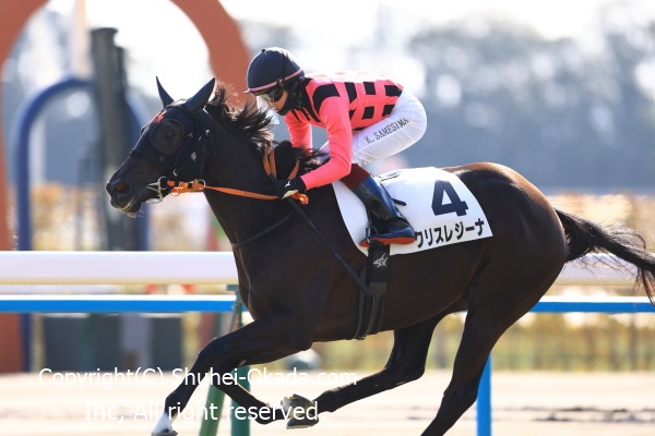 5レースのメイクデビュー(芝2000m)は鮫島克駿騎乗でファンディーナの娘、クリスレジーナが新馬勝ち。